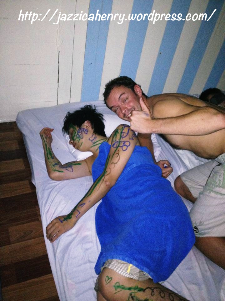 We arrived at the island at 12am and started to party on the beach. It was fun to party and dance away. Found this picture and I have no idea what 2 of my friends are doing.