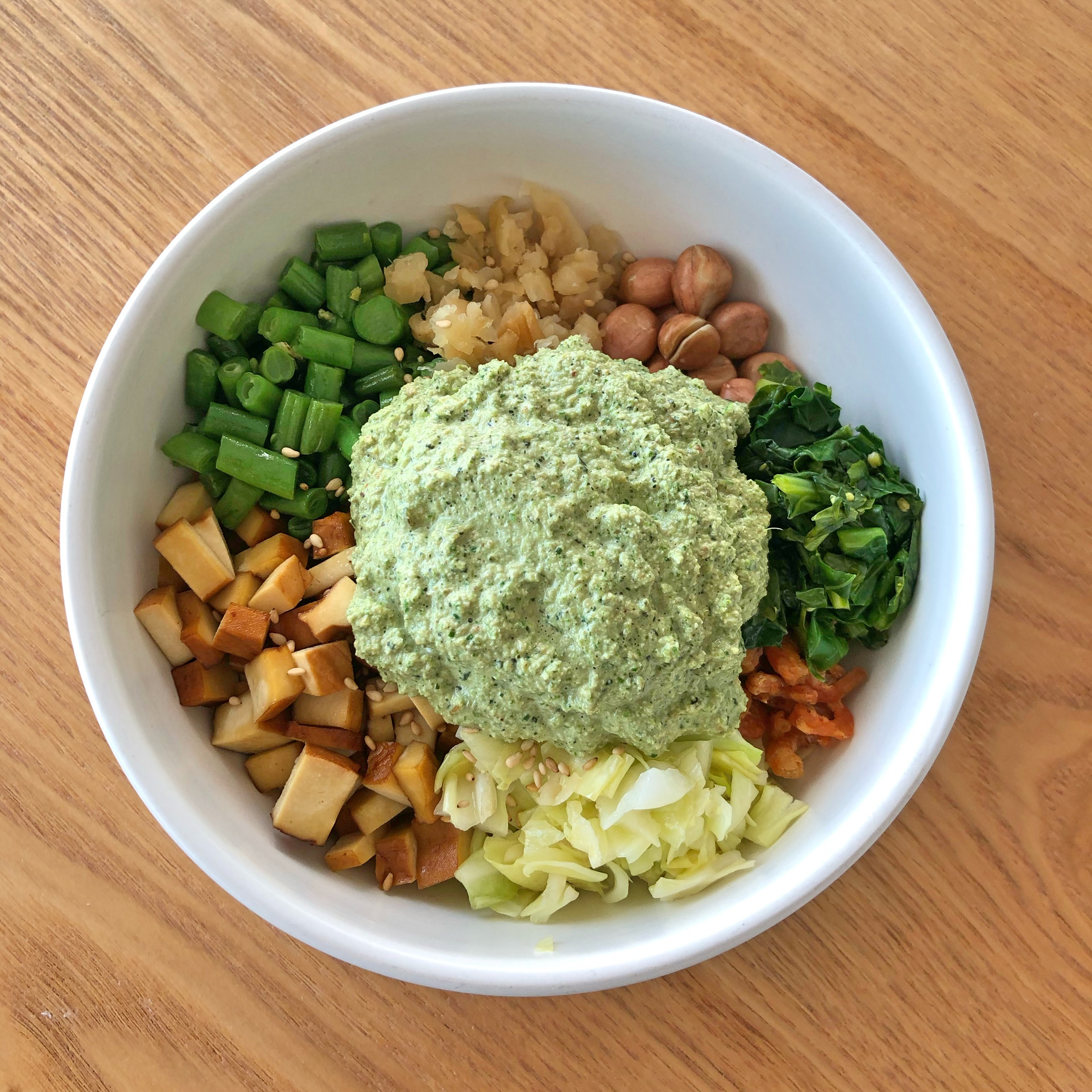 I made the paste and add hot water to my liking. The paste consist of Thai basil, mint, coriander, peanuts and sesame seeds.