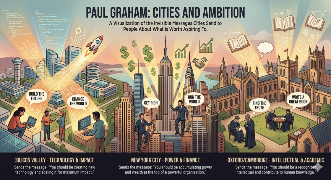 I realized I wasn’t well-read enough to articulate this feeling. Recently, I found a video about Paul Graham’s post, “Cities and Ambition” (2008). Reading his essay, I saw he captured what I felt.